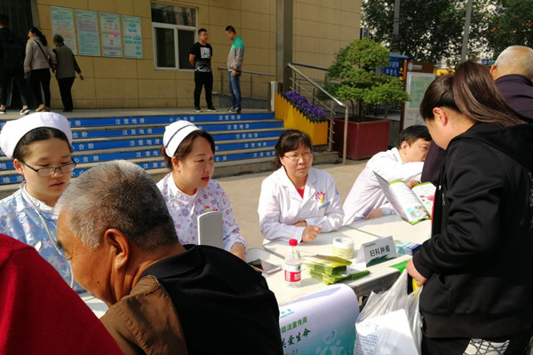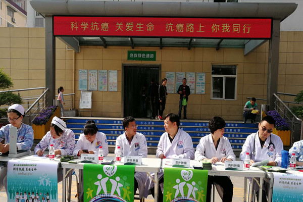 本次活動以專家義診和科學(xué)抗癌科普展的形式開展,活動現(xiàn)場,腫瘤內(nèi)科專家張文秀副主任醫(yī)師、普外科專家黃永凱副主任醫(yī)師、婦科專家王麗副主任醫(yī)師、胸外科專家張衛(wèi)寧副主任醫(yī)師、呼吸血液腫瘤科張引亮主治醫(yī)師等為前來咨詢的患者免費(fèi)義診,提供科學(xué)防癌咨詢,答疑解惑。婦科護(hù)士長鹿怡、呼吸血液腫瘤科護(hù)士長王麗芳、護(hù)士李小玉、普外科護(hù)士何瑾等為患者量血壓、發(fā)放防癌科普資料,講解常見致癌危險因素等相關(guān)知識。
