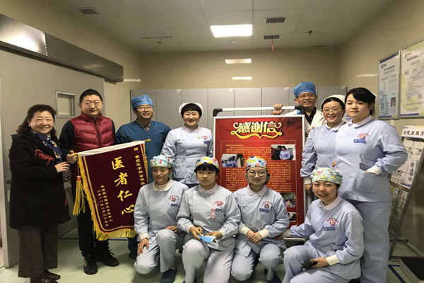 老人是一名肺癌呼吸衰竭的84歲病人,入院時病情危重,但在重癥醫(yī)學(xué)科醫(yī)護人員的科學(xué)治療和精心護理下,病情慢慢好轉(zhuǎn),氣色也一天天好起來。在病歷信息中,細心的醫(yī)護人員發(fā)現(xiàn),老人85歲生日快要到了,科室為了給他一份生日驚喜,也為祈禱老人抵抗病魔,了卻家屬心愿。生日當(dāng)天,科主任和護士長帶領(lǐng)全科護理人員“秘密”籌劃了這次祝壽活動,大家一起為老人唱生日祝壽歌,一起吹蠟燭……病房里洋溢著溫馨活躍的氣氛。這份意外驚喜讓昏迷中的老人睜開了眼睛,也使家屬感動不已,激動的流下了眼淚,在場家屬紛紛緊握著醫(yī)護人員的手,不停的說著“謝謝!謝謝!謝謝你們!……”