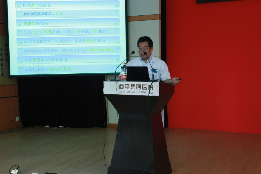 根據(jù)疾控中心最新數(shù)據(jù),我國18歲及以上人群高血壓患病率25%,高血壓具有發(fā)病率高、致死率高、致殘率高等特點,為了提高高血壓患者和基層醫(yī)務(wù)人員的高血壓健康知識,6.月6日上午,西電集團醫(yī)院心內(nèi)科通過精心組織、認真實施,在住院部六樓開展一場以“高血壓健康教育”為主題的知識講座,旨在有效預(yù)防和控制高血壓,提高廣大高血壓患者對高血壓等慢性疾病的認識和重視,提高高血壓知曉率,達到高血壓疾病早預(yù)防、早發(fā)現(xiàn)、早控制,由徐曉輝主任進行講座。