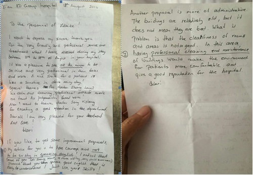 (患者的親筆表達(dá)的感謝與建議)