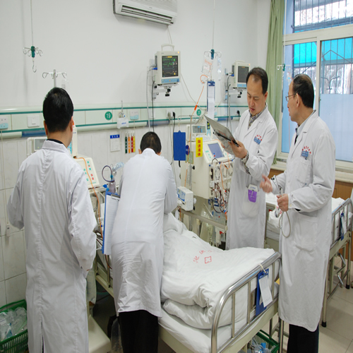 2月16日上午11時許,西電集團醫(yī)院接到寧陜縣醫(yī)院電話稱他們早上收了三位誤服汽車冷凍液中毒的患者,患者病情危重,他們經(jīng)過洗胃、建立靜脈通道的簡單處理,但不具備繼續(xù)搶救條件,要求轉到西電集團醫(yī)院繼續(xù)搶救治療,西電醫(yī)院立即啟動危重患者雙向轉診應急預案,迅速成立了以腎病科為主、心內科、呼吸科、重癥醫(yī)學科為輔的醫(yī)療搶救組。因為腎內科也是第一次遇見冷凍液中毒的患者,不知道其具體成份。徐玉祥主任、主治醫(yī)師張九芝一邊安排醫(yī)生上網(wǎng)查找資料,一邊安排護士準備床位、藥品及搶救設備,并根據(jù)寧陜縣醫(yī)院傳來的情況,在患者到醫(yī)院前積極組織討論,并制定了一套縝密的搶救方案與流程,開放綠色通道,所有醫(yī)護人員在科室待命,一場搶救生命的戰(zhàn)斗就此拉開了序幕。