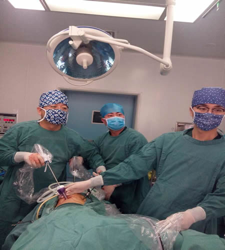 39歲的吳XX女士是蓮湖區(qū)的一名患者,10余年前查出患有高血壓,當時也沒在意,10年來間斷出現(xiàn)雙下肢無力,1年來輾轉(zhuǎn)多家醫(yī)院治療效果欠佳,患者及家屬多方打聽,于2周前來我院就診,門診測量血壓為180/105mmHg。自訴口服藥物降壓沒用,當時我院泌尿外科接診醫(yī)師予行雙側(cè)腎上腺CT薄層平掃,我院的飛利浦64排螺旋CT精確地將病灶定位在左側(cè)腎上腺上極,考慮原發(fā)性醛固酮增多癥。腎上腺手術(shù)是泌尿外科最為兇險的手術(shù)之一,術(shù)中術(shù)后隨時可能發(fā)生腎上腺危象(意味著隨時命懸一線),經(jīng)過詳細討論后,科室為病人制訂了完備的手術(shù)方案,后經(jīng)過2周的血壓控制,保留正常腎上腺體,行左側(cè)腎上腺腺瘤摘除術(shù)。經(jīng)過充分的術(shù)前準備,6月10日上午8:00,手術(shù)準時開始。術(shù)中看到的腫瘤確如術(shù)前評估的一樣難以處理,瘤體周圍交錯的血管十分復(fù)雜,稍有不慎就會使得小靜脈破裂出血,一點一點的好像螞蟻啃骨頭的方式,一步一步沿著左腎上腺腫瘤的邊緣將腫瘤剝離后,在麻醉科團隊的密切配合下,僅僅用了不到1個小時的時間完成了腎上腺腺瘤的完整摘除。術(shù)后病理證實與臨床診斷一致。術(shù)后每周隨訪2次,術(shù)后2周至今一直血壓穩(wěn)定,最近2天測量血壓分別為130/85mmHg,130/80mmHg,每次門診隨訪,患者本人都會高興地講“終于可以不吃藥了,下肢無力也改善了!”。據(jù)泌尿外科主任張旭主任醫(yī)師介紹:該科已為多例泌尿系統(tǒng)巨大腫瘤、腎上腺腫瘤、鑄型結(jié)石等重癥患者成功實施了高風(fēng)險、高難度手術(shù),也是我省較早開展微創(chuàng)手術(shù)治療的醫(yī)療團隊。類似這樣的腹腔鏡手術(shù)既往需要約3個小時的時間,此次腫瘤切除花費僅約1個小時,要感謝病人對我們的信任以及手術(shù)團隊的每一個人,大家的密切配合,手術(shù)才得以順利收官。合理的手術(shù)方案,專注的手術(shù)過程、精良的手術(shù)團隊讓這么大難度的腫瘤也一樣可以進行精準的治療,更加體現(xiàn)了該學(xué)科敢于挑戰(zhàn)、敢于擔(dān)當?shù)臅r代精神,以及精湛的手術(shù)水平和領(lǐng)先的學(xué)術(shù)地位。