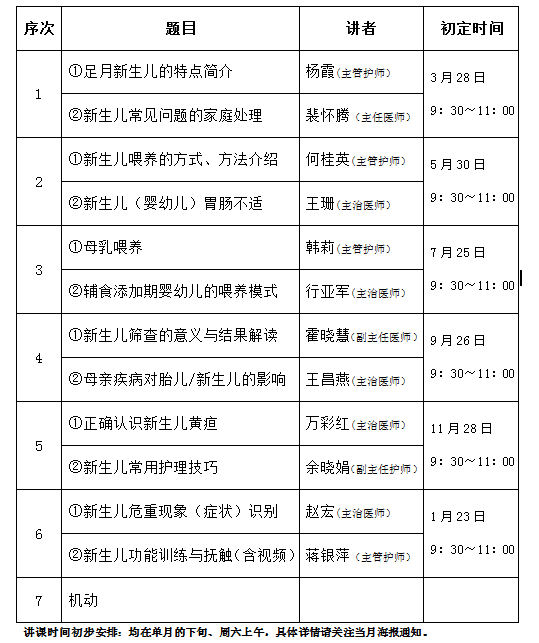 西電醫(yī)院新生兒科2015年度“育兒知識講座”內容安排
