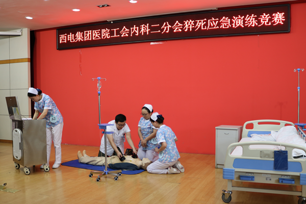 為了進一步提高醫(yī)務人員的急救操作能力與水平,增強醫(yī)護團隊之間的有效合作,西電集團醫(yī)院工會組織內(nèi)科二分會于6月23日在六樓學術廳舉辦了猝死應急演練競賽。