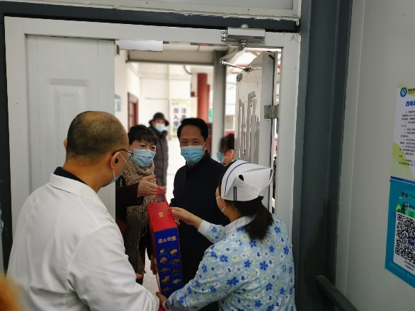 早上八點,慰問人員分別來到門診一部、門診二部、住院部和社區(qū)衛(wèi)生服務(wù)中心,親切看望大年初一值班的醫(yī)護(hù)人員,并向他們送上吉祥、喜慶的節(jié)日慰問品?!按蠹倚量嗔耍4蠹倚麓嚎鞓?!”慰問現(xiàn)場,參與慰問的院領(lǐng)導(dǎo)和職能部門負(fù)責(zé)人每到一處都熱情地問候各科室醫(yī)護(hù)人員,詳細(xì)了解值班醫(yī)務(wù)人員的工作、生活情況,囑咐大家在繁忙的工作中保重身體,做好新型冠狀病毒疫情防控,持續(xù)開展好醫(yī)療安全與質(zhì)量,確保春節(jié)期間醫(yī)療安全與質(zhì)量。