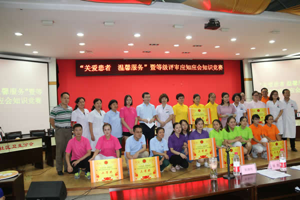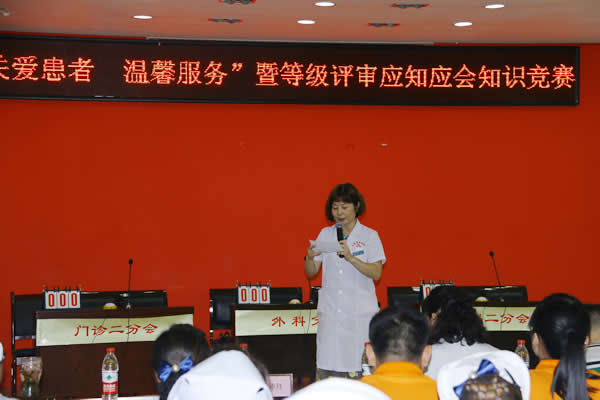 為了更好的推進(jìn)我院“關(guān)愛患者、溫馨服務(wù)”活動和等級評審相關(guān)工作,在工會、三甲辦、醫(yī)務(wù)科、護(hù)理部、質(zhì)管辦、院感科等多部門的精心籌劃下,我院于2016年9月9日下午三點半在我院多功能學(xué)術(shù)廳隆重舉辦了“關(guān)愛患者、溫馨服務(wù)暨等級評審應(yīng)知應(yīng)會知識競賽”活動。此次競賽活動得到了醫(yī)院領(lǐng)導(dǎo)和各分會以及各科室的大力支持。