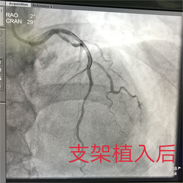 義診活動(dòng)當(dāng)日下午,一名在消化內(nèi)科就診的患者,在接受心電圖檢查后結(jié)果顯示:急性前壁心梗!門診立即啟動(dòng)胸痛中心綠色通道,繞行CCU直達(dá)導(dǎo)管室。冠脈造影顯示:前降支近端100%閉塞,即刻行支架植入術(shù),手術(shù)順利結(jié)束,患者DtoB時(shí)間僅僅用了74分鐘(患者進(jìn)醫(yī)院大門至PCI術(shù)導(dǎo)絲通過(guò)病變的時(shí)間)。在獲得患者信任和挽救生命欣喜的同時(shí),也再一次說(shuō)明西電集團(tuán)醫(yī)院胸痛中心建設(shè)已深入人心。