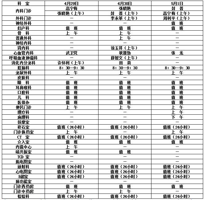 2017年五一勞動(dòng)節(jié)各科門診值班表