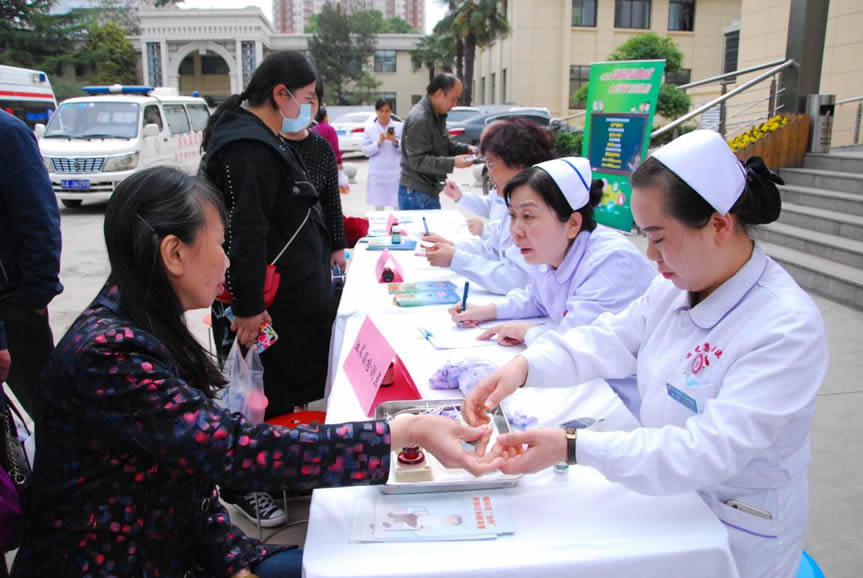 ?4月20日是“全國尿酸日”,西電集團醫(yī)院在醫(yī)院門診樓前進行義診,開展免費檢測血尿酸及專家咨詢活動。