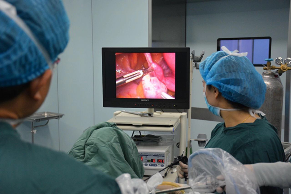 與傳統(tǒng)手術(shù)相比,腹腔鏡手術(shù)只需在腹壁上留有3—4個(gè)0.5—1.5厘米的小口,伸入腹腔鏡,醫(yī)生通過(guò)電視屏幕觀察腹腔內(nèi)的情況,再伸入手術(shù)器械進(jìn)行各種手術(shù),從而代替了在腹壁進(jìn)行長(zhǎng)切口,避免了腹壁肌肉、血管及相應(yīng)神經(jīng)的損傷,戳口小而且分散隱蔽,出血少,對(duì)身體傷害小,恢復(fù)快。