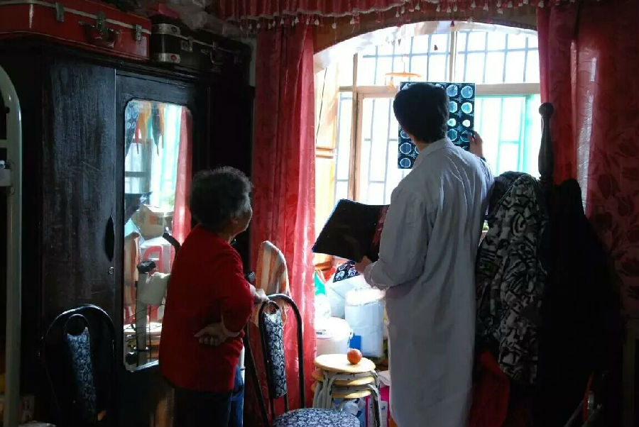56歲的閆師傅此前因腦出血曾在神經(jīng)外科住院治療,術(shù)后回家休養(yǎng),出院前,與醫(yī)院簽訂了家庭??漆t(yī)生服務(wù)協(xié)議。在閆師傅家里,崔創(chuàng)醫(yī)生認真仔細的給他進行了全身檢查,發(fā)現(xiàn)由于腦出血造成偏癱后遺癥,加之長期臥床造成血液循環(huán)較差,他右側(cè)肢體水腫,腹部膨隆,言語不清,留置尿管內(nèi)的尿液渾濁。由于閆師傅單身,80歲的老母親承擔(dān)照顧他的日常生活,每天的尿管護理和輸液是老媽媽最頭疼的問題。護士長田瑞瑞和護士董欣欣為防止閆師傅尿路感染,熟練的為他進行了膀胱沖洗、更換新尿管,并現(xiàn)場指導(dǎo)他媽媽如何操作;同時為減少反復(fù)穿刺的痛苦,方便輸液,又給他留置了靜脈留置針,并且耐心地指導(dǎo)他媽媽如何為他翻身、肢體功能鍛煉、刺激語言中樞恢復(fù)……閆師傅的媽媽眼眶濕潤地握著護士長的手連聲道謝:謝謝!謝謝你們!為我們想的太周到了。