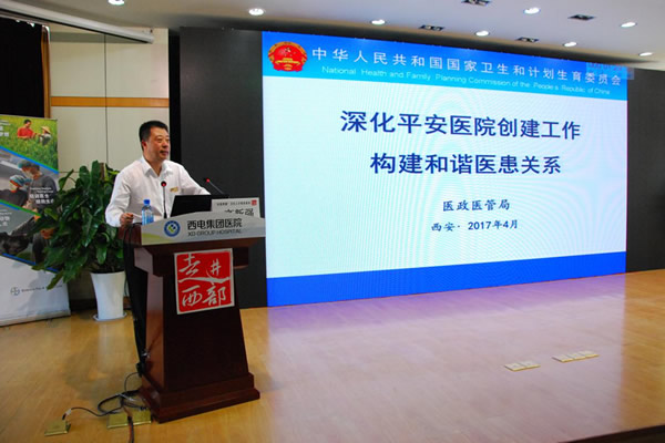 國(guó)家衛(wèi)生計(jì)生委安全與血液處處長(zhǎng)高新強(qiáng)做了題為"深化平安醫(yī)院創(chuàng)建工作 構(gòu)建和諧醫(yī)患關(guān)系的經(jīng)驗(yàn)"的分享。