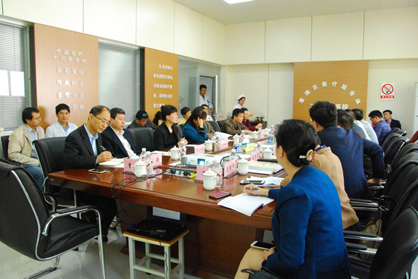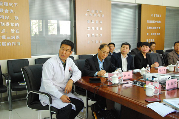 雷主任一行與市衛(wèi)計(jì)委王紅艷主任、蓮湖區(qū)衛(wèi)計(jì)局領(lǐng)導(dǎo)、王雙全院長(zhǎng)、吳艷梅副院長(zhǎng)、陰小龍副院長(zhǎng)等相關(guān)人員進(jìn)行了交流座談。市醫(yī)政醫(yī)管處閆自強(qiáng)處長(zhǎng)簡(jiǎn)要介紹了西安市醫(yī)聯(lián)體框架及運(yùn)行情況;蓮湖區(qū)衛(wèi)計(jì)局副局長(zhǎng)毛明藝圍繞建設(shè)緊密型醫(yī)聯(lián)體“蓮湖模式”進(jìn)行了詳細(xì)匯報(bào);桃園社區(qū)服務(wù)中心主任孫安志就緊密型醫(yī)聯(lián)體的“四個(gè)下沉、兩個(gè)提升”以及家庭醫(yī)生、??漆t(yī)生簽約服務(wù)的具體內(nèi)容做了解讀;王雙全院長(zhǎng)就雷主任一行提出的西電集團(tuán)醫(yī)院派駐專家定點(diǎn)幫扶等具體問題做了詳細(xì)解答。