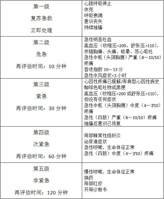 西電集團(tuán)醫(yī)院急診五級(jí)檢傷分類標(biāo)準(zhǔn)