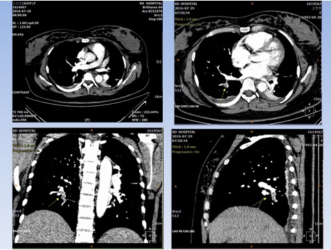 術(shù)后36小時(shí),正值凌晨五點(diǎn),患者突然出現(xiàn)胸悶、心慌氣短,不能平臥的緊急狀況,值班醫(yī)生考慮“心功能不全、肺栓塞?”,急請(qǐng)相關(guān)科室會(huì)診進(jìn)行搶救治療。產(chǎn)科賈小文主任、李宏副主任醫(yī)師也趕到搶救,再次組織科室進(jìn)行疑難危重病例討論,結(jié)合肺動(dòng)脈造影考慮患者發(fā)生了剖宮產(chǎn)術(shù)后肺動(dòng)脈栓塞。肺栓塞是臨床上危急重癥,發(fā)病急,若不得到積極治療,死亡率可高達(dá)20%~30%。剖宮產(chǎn)術(shù)后肺栓塞發(fā)病隱匿,病情兇險(xiǎn)、復(fù)雜,漏診率高。產(chǎn)科醫(yī)護(hù)通過(guò)對(duì)患者的細(xì)致觀察和對(duì)臨床危急重癥的警覺(jué),快速明確病情,經(jīng)多學(xué)科協(xié)助搶救,患者再次脫離生命危險(xiǎn),轉(zhuǎn)入重癥科,給予抗炎、抗凝、活血、改善循環(huán)、強(qiáng)心等治療,術(shù)后20天患者痊愈出院。