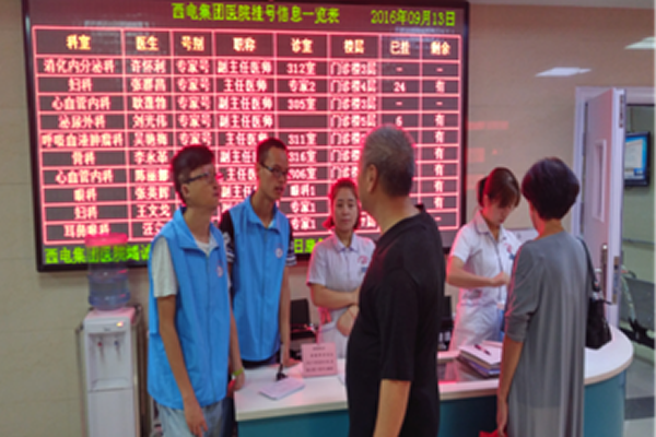 2016年6月,在院領(lǐng)導(dǎo)的關(guān)懷下,我院組建了“青年志愿者”服務(wù)隊(duì),主要由青年醫(yī)務(wù)(實(shí)習(xí))工作者組成,在忙碌的學(xué)習(xí)工作之余為患者提供導(dǎo)醫(yī)、導(dǎo)診、咨詢、陪同和照顧等服務(wù)?!扒嗄曛驹刚摺被顒?dòng)進(jìn)行一年來,已逐漸融入到門診、住院部各醫(yī)療環(huán)節(jié)中。截止目前,已有400余人次志愿者參加活動(dòng),在醫(yī)院日常診療活動(dòng)、重大會(huì)議、學(xué)術(shù)活動(dòng)、社會(huì)活動(dòng)中貢獻(xiàn)了力量,涌現(xiàn)了一批醫(yī)德醫(yī)風(fēng)高尚、基礎(chǔ)知識(shí)扎實(shí)、富有愛心樂于助人的優(yōu)秀志愿者。