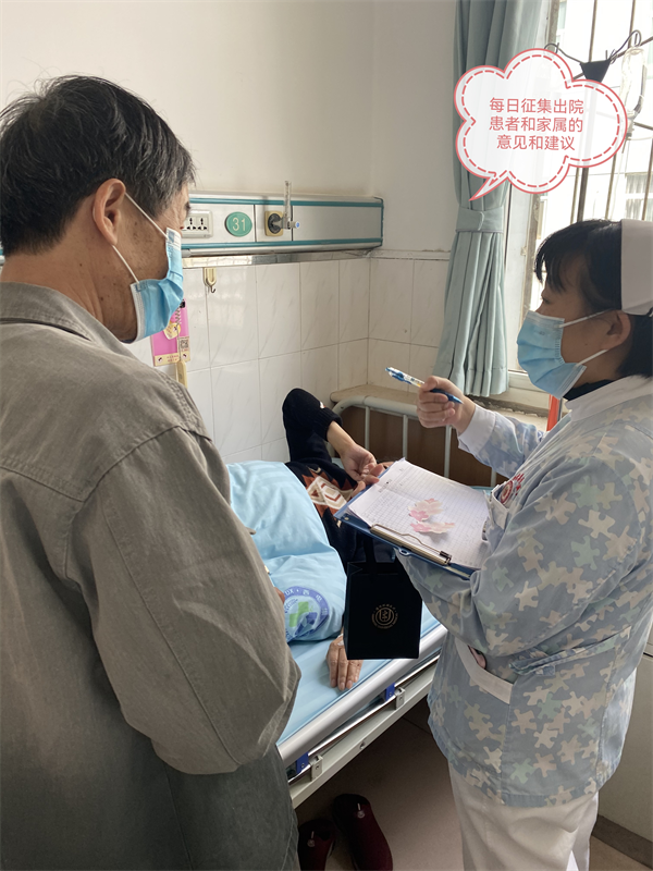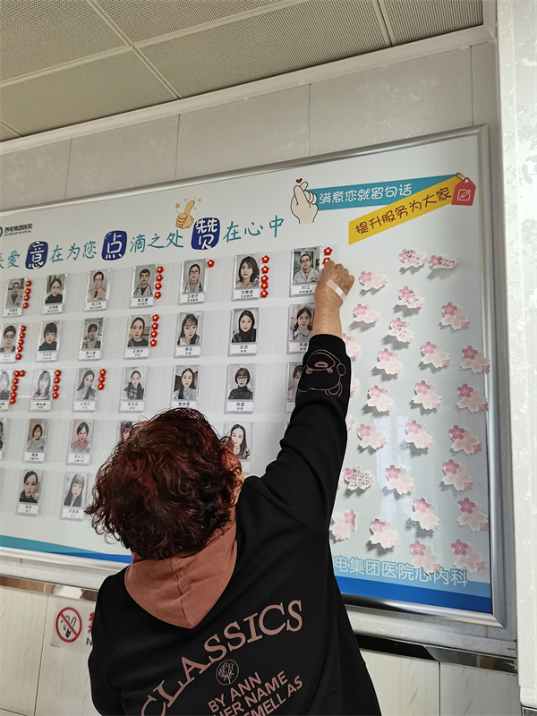 每天早上11:00,高媛主管護(hù)師對出院前的患者進(jìn)行摸底調(diào)查,征求患者及家屬的意見及建議,讓其對住院期間最滿意的醫(yī)生或護(hù)士送上一朵小紅花,并張貼在點(diǎn)贊墻上。每個(gè)月底,科室統(tǒng)一對小紅花的數(shù)目進(jìn)行統(tǒng)計(jì),并計(jì)入當(dāng)月的績效考核中,以此鼓勵(lì),不斷持續(xù)改進(jìn)服務(wù)質(zhì)量。