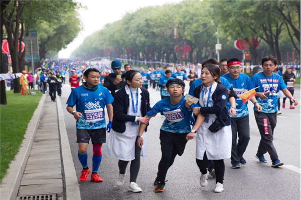 醫(yī)療觀察員曹曉艷發(fā)現(xiàn)一個(gè)小伙子在接近半馬的終點(diǎn)時(shí)面色發(fā)白,呼吸急促,連忙主動(dòng)上前詢問(wèn),得知他產(chǎn)生嚴(yán)重眩暈感之后,曹曉艷連忙攙扶他平躺,給予葡萄糖補(bǔ)充能量。稍有好轉(zhuǎn)后,小伙子提出要繼續(xù)比賽,考慮到運(yùn)動(dòng)員的身體狀況,曹曉艷、王珅敏兩名醫(yī)療觀察員進(jìn)行勸阻,不建議他再跑下去。但是,小伙子仍然堅(jiān)持繼續(xù)比賽,不愿意放棄這難得的比賽機(jī)會(huì),情急之下,曹曉艷、王珅敏陪同在這位運(yùn)動(dòng)員身邊跑了近400米,直到到達(dá)120急救中心站點(diǎn),運(yùn)動(dòng)員被攔下并安全送至120急救車。兩位醫(yī)療保障隊(duì)員的賽道現(xiàn)場(chǎng)表現(xiàn),受到參賽運(yùn)動(dòng)員及賽事媒體的關(guān)注與贊賞。